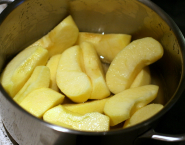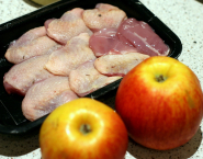 Jablká olúpaj, nakrájaj na osem polmesiačikov a var krátko v troche limoncella. Prepeličie filé nakrájaj na kocky.
