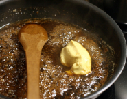 Nechaj maslo roztopiť, posyp ho veľkoryso cukrom a nechaj povariť. Pridaj šťavu z jabĺk (čiže limoncello) a horčicu a dobre premiešaj. Glazúra na mäsko je hotová.