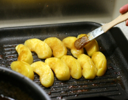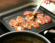 Filé posyp veľmi mierne soľou a korením a potri ho mäso aj jablká potri glazúrou a opeč na grile sza pravidelného polievania šťavou. To udrží mäsko aj ovocie šťavnaté.