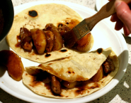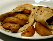 Potom prelož mäso aj jablká na tortilly, pokvapkaj “marinádou” a dobrú chuť.