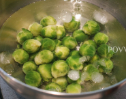 Odstráň vrchné lístky z rúžičkového kelu a blanšíruj ich vo vriacej, osolenej vode počas 7-8 minút. Potom ich sceď, a na chvíľu ponor do ľadovej vody. Väčšie kúsky môžeš prekrojť napoly, alebo na štrtiny