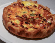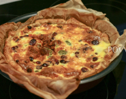 Quiche peč v predhriatej rúre pri 200°C približne 30-35 minút, do zlatista. Po upečení ho z rúry vyber, nechaj 1 minútku ochladnúť vo forme a potom ho z nej vyber.