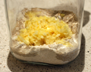 Počas ďalších dní z neho už len odoberáš a “priživuješ” ho. Ak ho necháš stáť v chladničke, stačí ho “priživovať” len raz do týždňa a to 100 ml vody a 100 g múky (viď posledné foto). Ak ho nechávaš stáť pri izbovej teplote, treba ho živiť týmto spôsobom každý deň a musí mať konzistenciu asi ako jogurt.