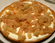 Teraz plnka: Metličkou vyšľahaj smotanový syr na jemno, pridaj nie príliš do tuha vyšľahanú šľahačku a miešaj až masa trocha zhustne. Neprežeň to – masa musí byť bohatá a nadýchaná. Primiešaj cukor a muškátové víno (ja som použila vlastnoručne vyrobené limoncello – viď v portfóliu Drankjes en siroopen na povvi), alebo rum, čím získaš mascarpone podobnú konzistenciu. Tvaroh môžeš nahradiť pravým mascarpone (ja som ju robila s mascarpone). Naplň ňou tortu. Navrch rozdeľ upečenú a vychladenú rebarboru a pokvapkaj sirupom vyduseným z rebarborovej šťavy. Teraz trocha od torty odstúp, chvíľu svoj výtvor poobdivuj a pusť sa do nej!