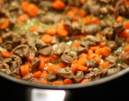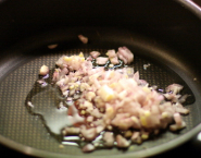 Pripravíme si kurací bujón z kocky. Na oleji opražíme nadrobno nasekanú šalotku a po chvíli k nej pridáme očistené a na štvrtinky nakrájané kuracie srdiečka. Osolíme, okoreníme a opražíme. Mrkvu očistíme a nakrájame na asi 3mm hrubé kolieska, pridáme ju k srdiečkam a troška spolu podusíme.