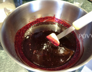 V kastróliku rozvar zvyšné čučoriedky. Preceď cez sitko a pridaj namočený plátok želatíny, alebo agar-agar. Ale pridať môžeš aj želírovací cukor. Nechaj želé troška ochladnúť a potom ho v tenkej vrstve rozotri po povrchu stuhnutej torty.