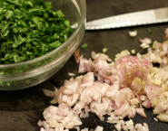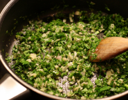 Šalotku a šťavelové listy nasekaj najemno. Šalotku opraž 30 sekúnd na rozpálenom masle.