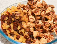 Figy nakrájaj na menšie kúsky. V miske ich zmiešaj so sultana hrozienkami a bielymi hrozienkami. Pridaj pol pohára rumu a nechaj 6 hodín odstáť.