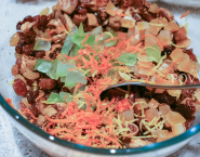 - soľ, korenie (klinček, muškátový oriešok, škorica, badián), rum, cukor, orechy a kandizované ovocie na dekoráciu