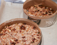 Všetky oriešky a všetko ovocie primies k vykysnutému cestu. Potom cesto rozdeľ do 4 foriem na pečenie (nie plechov) podľa želania. Chlebíky potri sirupom uvareným z cukru a medu a nechaj ich ešte ca.30 minút podkysnúť.
