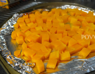 Tekvicu olúpaj, nakrájaj na plátky a prípadne odstráň všetky jadrá. Potom ju nakrájajte na malé kúsky. Kúsky tekvice umiestni na plech vyložený alobalom. Tekvicu naň poukladaj a potom všetko úplne zakry ďalšou vrstvou alobalu. Peč pri teplote 230˚C počas približne 30 – 40 minút, až kým sú kúsky jemné a ľahko sa dajú rozmiešať vidličkou. Vyber tekvicu z rúry a všetku ju rozmixuj na hladké pyré v mixéri. Tekvicu si môžeš pipraviť aj deň vopred.