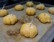 Po dokončení formovania cesta, tekvičky zakry a nechaj podkysnúť o ďalších 75%. Cesto by malo byť pevne zakryté, aby sa zabránilo vysychaniu. Najlepšie utierkou a igelitovým vreckom.