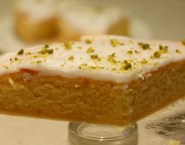 Vychladnutú tortu potri tortovým želé, alebo fondánovým cukrom a posyp troškou nasekaných pistáciových orieškov.