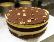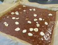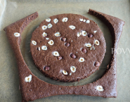 Joconde piškótu rozdeľ rovnomerne na plech o veľkosti 40 x 30 cm a vyložený papierom na pečenie, posyp ho nasekanými lieskovcami a piškótu peč v predhriatej rúre pri 220°C (teplovzdušné rúry -20°C) po dobu asi 6-8 minút.