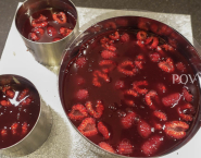 Červené víno zahrej, primiešaj k nemu cukor a za hrsť malín a priveď do varu. Nechaj všetko vyvariť na omáčku. Želatínu namoč do studenej vody a keď zmäkne, primiešaj ju k pripravenému coulis. Nechaj ho ochladnúť až začne tuhnúť a potom hovylej na kokosové anglaise (čítaj angléze) v tortovej forme. Tortu potom znova vlož dochladničky, aby coulis stuhlo.