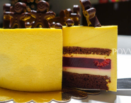 Po stuhnutí prelož tortu do väčšieho kruhu a ulož na vrch druhé tortové dno. Celú tortu teraz zalej druhou polovicou mangového bavarois a nechaj stuhnúť v chladničke.