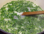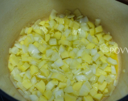 Nasekanú trebuľku potom pridajk zelenine, chvíľku spolu popraž, zalej vodou a nechaj približne 20 minút variť.