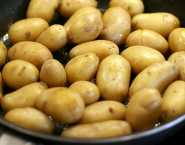 Zemiaky umyjeme a v šupke varíme 20 minút. Potom scedíme a dáme opražiť do chrumkava na rozpálené maslo na panvici.