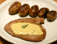 Tuniaka podávame na zohriatych tanieroch preliateho omáčkou a opraženými zemiakmi.