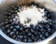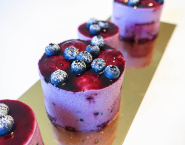 Najprv si priprav čučoriedkové coulis a to tak, že spolu rozvaríš väčší diel čučoriedok, kryštálový cukor a likér. Rozvarenú masu preceď cez sitko, za naberačku z nej odlej do misky a zvyšok odlož nabok.