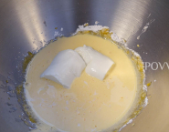 Žĺtky vyšľahaj s práškovým cukrom do peny a keď je hotová, prišľahávaj do nej postupne tvaroh, alebo pribiťáčikov (doma sme tak volali Pribináčik).