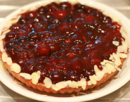 Podľa návodu na balení si pripravíme želatínu a necháme ju ochladnúť. V momente, keď začne rôsolovatieť, nalejeme ju na višne, kraje posypeme plátkami mandlí a tortu vložíme do chladničky vychladnúť.