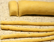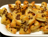 Uvarené zemiaky olúpeme a nastrúhame najemno (alebo pretlačíme cez lis na zemiaky ako ja vďaka Anaske). Maslo necháme zmäknúť. Zemiaky vložíme do misy, pridáme ostatné suroviny (okrem hrubej soli, sezamu a rasce-tie sú na posypanie) a vypracujeme cesto. Z cesta odkrajujeme malé kúsky a z každého vyvaľkáme asi 20 cm dlhý valček, ktorý vytvarujeme do praclíka. Alebo cesto rozváľaj na hrúbku 4 mm a povykrajuj z neho anjelikov, alebo iné tvary podľa vlastnej voľby. Praclíky uložíme na plech vyložený papierom na pečenie, potrieme rozšľahaným vajíčkom a posypeme podľa vlastnej chuti hrubou soľou, sezamom, ľanovým semienkom a pod. Pečieme v rúre predhriatej na 180°C asi 13-18 minút, do zlatista.