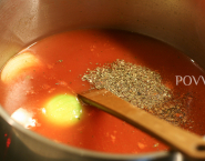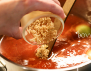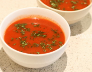 Voeg er vlak voor het serveren van de tomatensoep de gehakte peterselie aan toe.