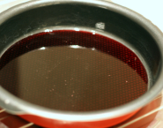 Kook de suiker en wijn tot de helft en tot het siropig word. Neem de wijnsiroop van het vuur.