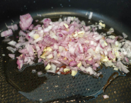 Voeg de kruiden sjalotten en knoflook toe en kook gedurende 3 minuten tot doorschijnend.
