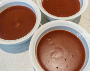 Giet de massa in glaasjes of potjes en laat gedurende minstens 3 uur mooi opstijven in de koelkast.