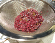 Schenk ondertussen de saus in een hoge beker en verwijder de kruiden. Pureer de saus met een staafmixer en kook op hoog vuur tot de saus verdikt. Als ze klaar is voeg wat verse bessen erin en laat ze even in de saus opwarmen. Klaar.