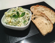 Doe de dressing bij de ingrediënten in de kom en meng alles zachtjes maar nauwkeurig door elkaar. Desnoods breng op smaak met wat dille en citroensap en dien op met chiabatta, echte Deens knaekbrod, of verse baguette.