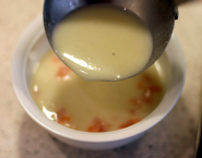Snij de witte venkelknollen in grote stukken, verwijder het groen maar bewaar de `veertjes`, aan het uiteinde van het groen. Trek een liter bouillon of gebruik een bouillonblokje. Kook de venkelstukken in tien tot vijftien minuten in de bouillon gaar. Pureer de venkel in de blender of met behulp van een staafmixer, voeg de knoflook toe en proef op smaak. Laat nog even doorkoken en voeg een scheut room toe. Roer goed, zet soepborden klaar en leg op ieder bordje wat garnalen. Giet er soep overheen en garneer met de venkelveertjes.