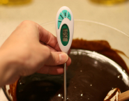 Bereid de glanzend chocoladeglazuur en gekonfijte abrikozen voor.
