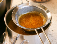 Haal de varkenswangen eruit en zeef de overblijvende jus. Laat de jus inkoken tot een mooi gebonden saus. Snijd de varkenswangetjes bij en bak aan in wat boter. Werk de saus af met een klontje boter en de Sherry-azijn.