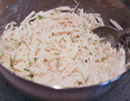 Schep de knolselderij en appel erdoor. Laat de salade minstens 30 minuten op smaak komen.