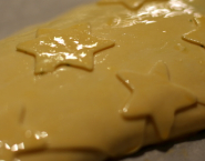 Doe de in stukjes gesneden kruiden samen met de knoflook in een mixer, voeg de citroenschil van halve citroen, zout, peper en mascarpone. Mix alles heel fijn en zet alles in een kom in de koelkast. Dit kan je ook dag vroeger voorbereiden. Verwarm de oven voor op 200°C (hete luchtovens -20°C). Bereid het bladerdeeg op een werkblad en doe in het midden van het deeg de stuk van zalm zonder hem op smaak te brengen. Je mag hem even drogen met keukenpapier en laat de vel op hem. Smeer hem met de kruidige massa met mascarpone en wikkel hem in het deeg. Bovenop de pakjes met zalm kan je nog sterretjes van het bladerdeeg maken. Bestrijk het pakje et eistrijksel en zet hem in de oven.