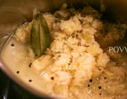 Snijd de zuurkool fijn, voeg peper en laurier en laat koken samen met zuurwater van de zuurkool, tot gaar.