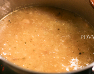 Als je de spoep rijker wil maken, voeg op dit punt ook in ringen gesneden gerookte worst of blokjes gerookte vlees bij.