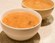 In plaats van een roux voeg een rauwe, geraspte aardappel bij de soep en indien nodig, breng ze op smaak met wat peper en zout en marjolein.